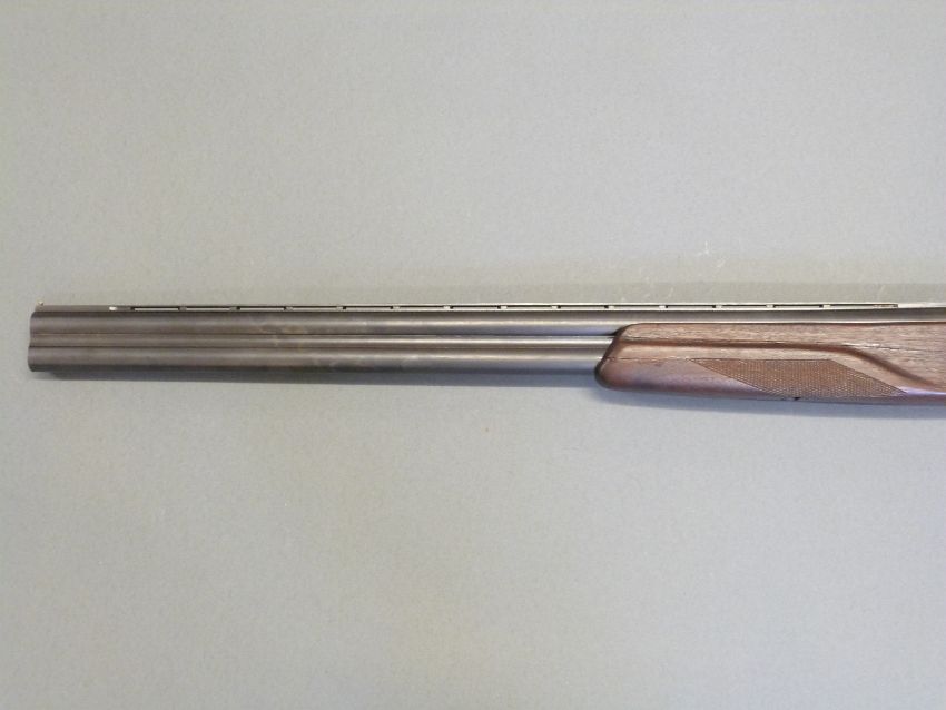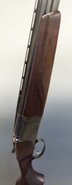 Baikal 27E-IC 12 bore over and under ejector shotgun with chequered grip and forend, engraved lock, raised and vented top rib, ball sight, single trigger and 27.5" barrels, overall length 114cm, length of pull 37cm, serial number E04865. PLEASE NOTE THAT A VALID RELEVANT FIREARMS/SHOTGUN CERTIFICATE IS REQUIRED TO HANDLE/PURCHASE THIS ITEM.