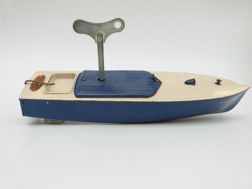Hornby Swift clockwork tinplate model speedboat with original keys