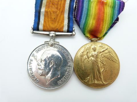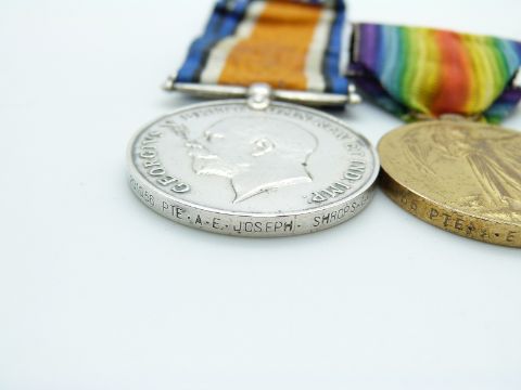 WWI medal pair comprising War and Victory medals named to 201056 Pte A E Joseph Shropshire Light Infantry