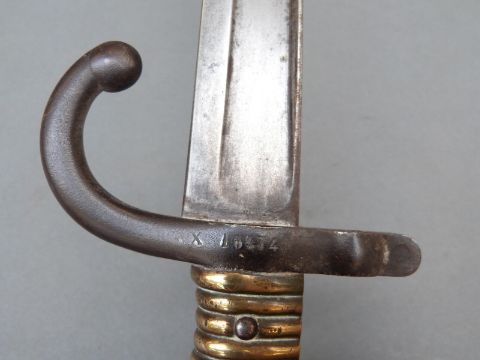 French 1866 pattern Yataghan bayonet with brass handle, marked X16474 to hilt