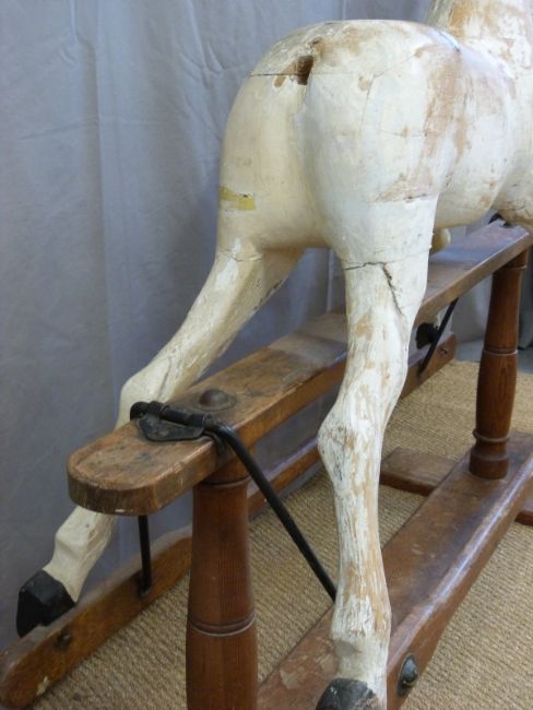 A Victorian Lines Bros wooden rocking horse on swing stand, stamped to the metal joint, LB Ltd SP3, 165cm long.