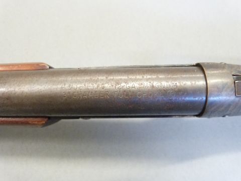 Harrington & Richardson model 176 12 bore shotgun with shaped stock, orange sight and 30" barrel, overall length 114cm, length of pull 35cm, serial number AU557177. PLEASE NOTE THAT A VALID RELEVANT FIREARMS/SHOTGUN CERTIFICATE IS REQUIRED TO HANDLE/PURCHASE THIS ITEM.