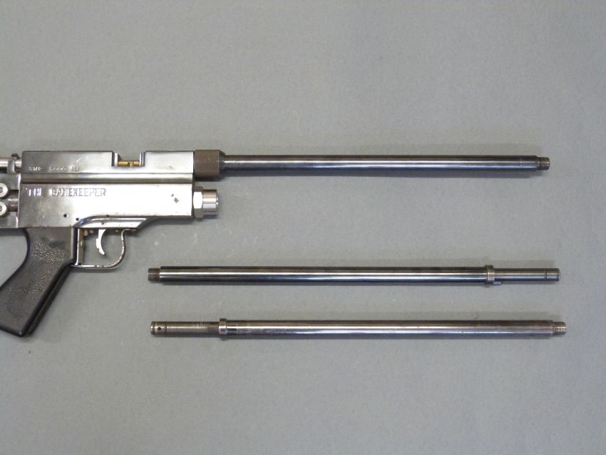 Colchester Gamekeeper take down air rifle with .25, .22 and .177 barrels and semi-pistol grip, serial number 00121, in original hard carry case.