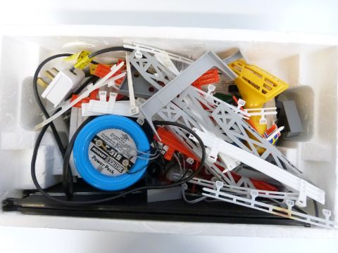 Scalextric Superspeed model motor racing track set c547 together with a Flyover Bridge c169, both in original boxes.