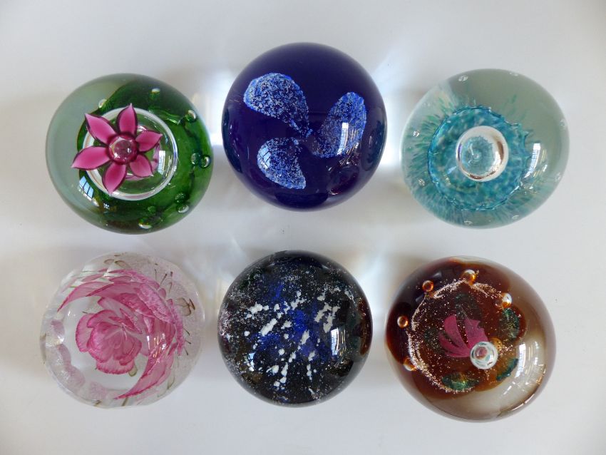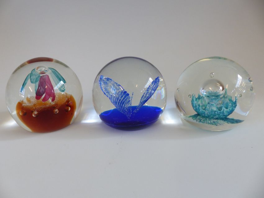Six Caithness Glass limited edition paperweights Guillemot 392/500, Repose 192/750, Princess 113/250, Hydroponic 349/750, Free Fall 629/750 and Space Landing 364/750, some with certificates