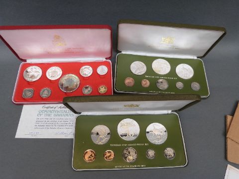 A cased Commonwealth of the Bahamas proof coin set together with two Trinidad and Tobago example