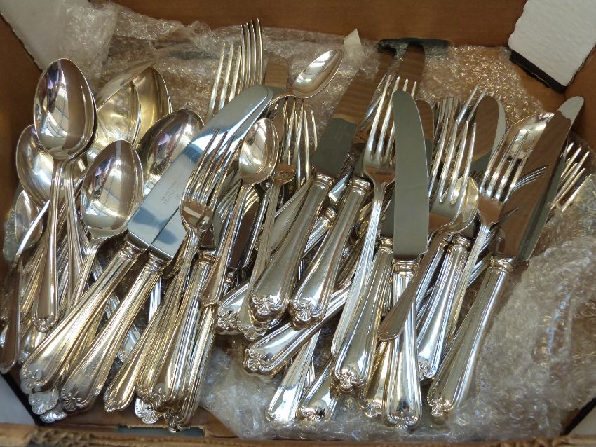 An eight place setting canteen of silver plated of cutlery by Hugh Foulerton
