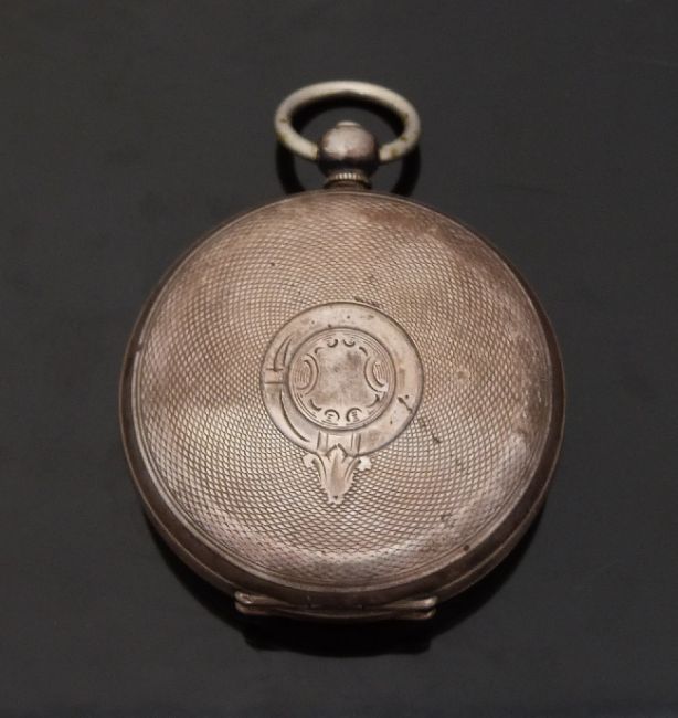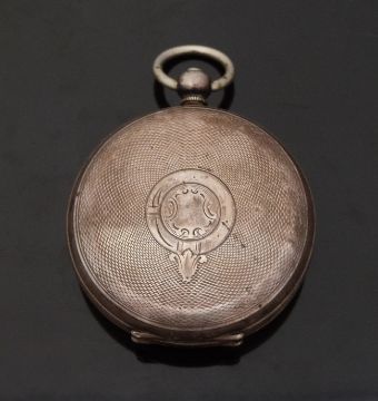 Kendal & Dent continental silver open faced pocket watch with inset subsidiary seconds dial, black hands, Roman numerals, white enamel face, engraved case and Swiss movement, case diameter 51mm, serial number 1192139.