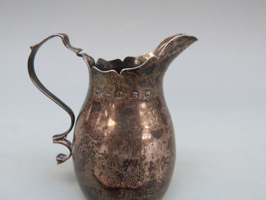 Victorian hallmarked silver miniature jug, Birmingham 1894, maker S.Blanckensee, H 7cm, weight 44g, together with a white metal mounted folding knife