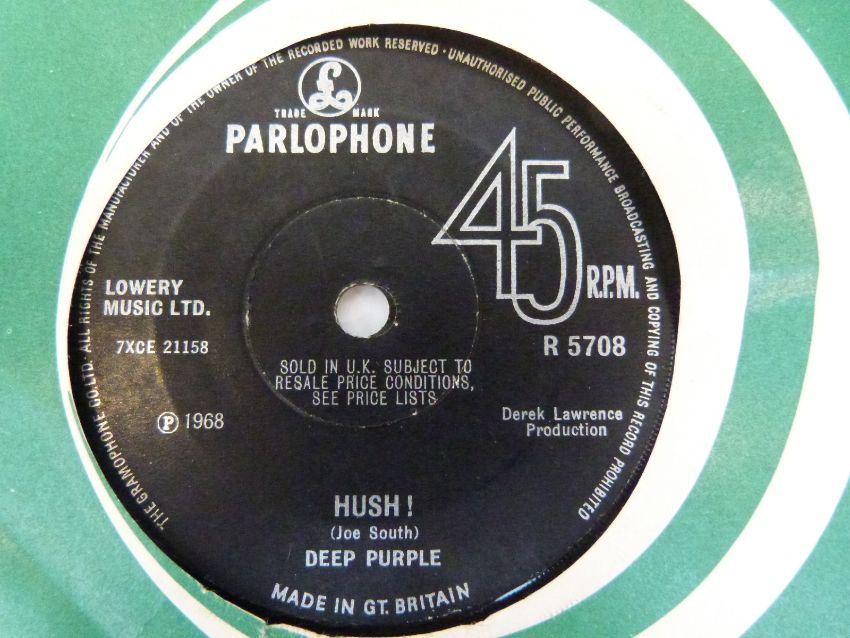 Six collectable Parlophone singles, all appear at least VG or EX. Hush - Deep Purple, I'm Gonna Jump - Toggery Five, Winston G - Until You Were Gone, Lemon Tree - William Chalker, Tomorrow - My White Bicycle and The Groove - the Wind