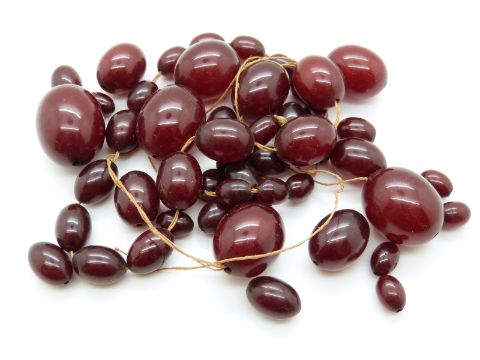 A cherry amber necklace of 48 graduated ovoid beads, largest 28.7 x 21.4mm, 92g.