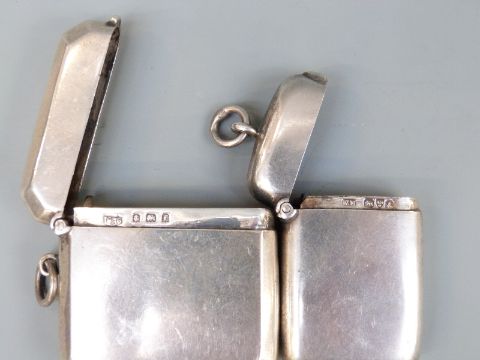 Two Edward VII silver vesta cases, one Birmingham 1905, maker Harry Haynes, 44mm tall, 31g, the other Chester 1901, maker William Neal, 50mm tall, 20g
