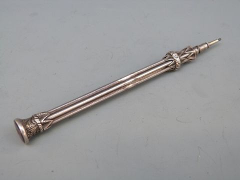 Samuel Mordan white metal propelling pencil with reeded column and intaglio cur seal to end, extended length 11cm