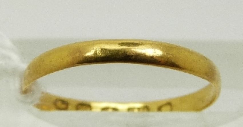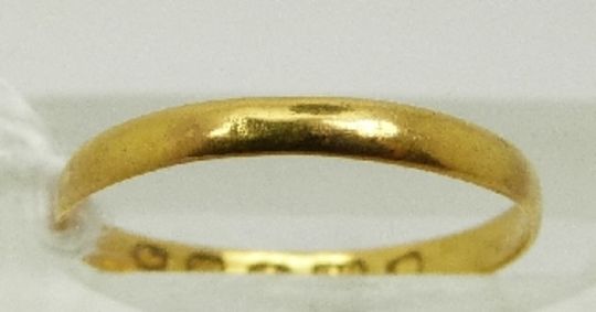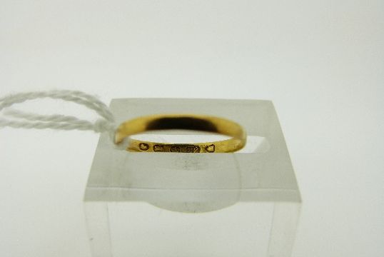 A Victorian 22ct gold ring/ wedding band, London 1872, size J, 0.8g