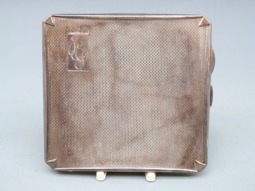 Art Deco hallmarked silver cigarette case with engine turned decoration, Birmingham 1939 maker S M Levi Ltd, width 8.5cm, 104g