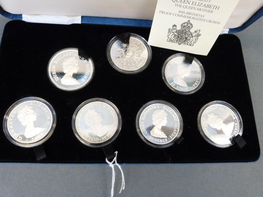 A Royal Mint cased set of seven silver coins to commemorate HRH The Queen Mother's 80th Birthday