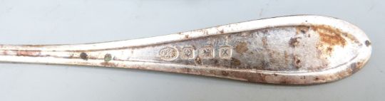 Cristofle plated beaker and a hallmarked silver pusher and plated spoon set