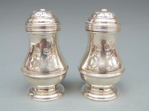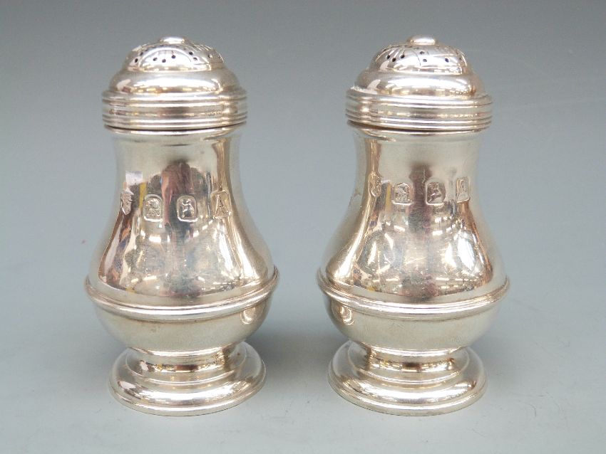 Edward VIII pair of Britannia standard hallmarked silver pepper pots, Ldn 1936, 8cm tall, 190g