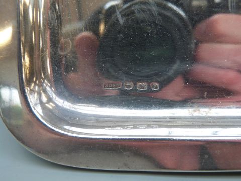 George V Art Deco hallmarked silver dressing table tray, Sheffield 1932, maker James Dixon & Son, 27.5 x 19cm, 408g