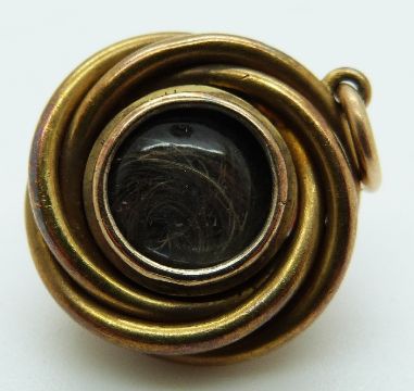 A Victorian pinchbeck knot pendant set with coral and rose cut diamonds verso a glass compartment