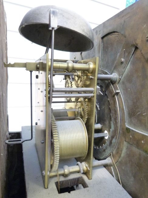 William Porthouse, Penrith, George III oak longcase clock, the square brass 31cm Roman dial with silvered chapter ring and Arabic minutes, secondary seconds and corner spandrels with quartered pillars and scalloped door. The 8-day movement striking on a bell, 215cm tall