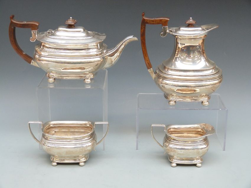 George V hallmarked silver four piece tea set, Sheffield 1916 maker Roberts & Belk, 1593g all in