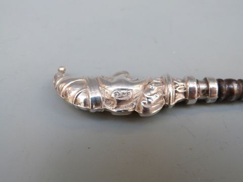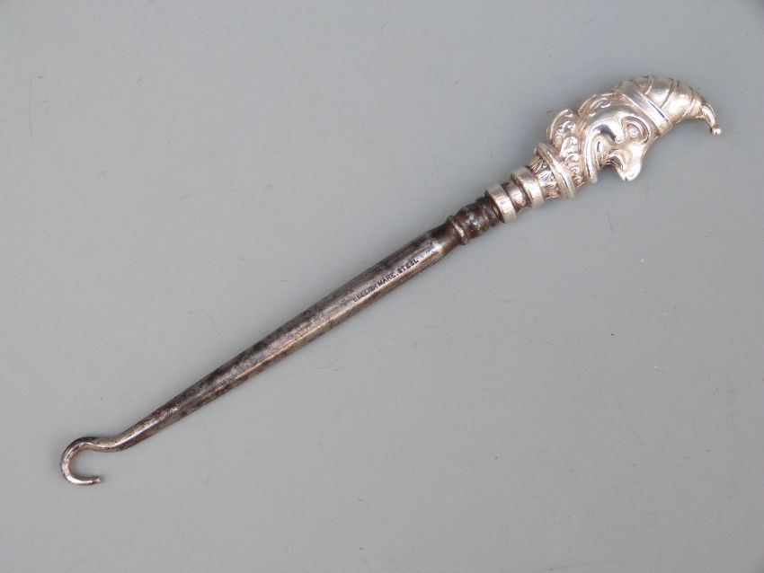 Edward VII hallmarked silver novelty button hook depicting Punch, Birmingham 1906 maker Robert Pringle & Sons, length 15cm