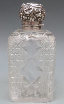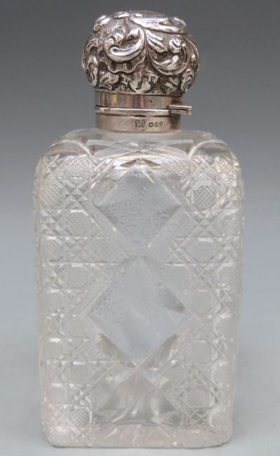 Victorian hallmarked silver topped dressing table bottle, London 1881 maker Drew & Sons and also marked Drew & Sons, 15 Gleadenhall St, E.C.,18cm tall