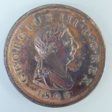George III third type cartwheel penny dated 1806 on obverse, 11 laurel leaves EF+