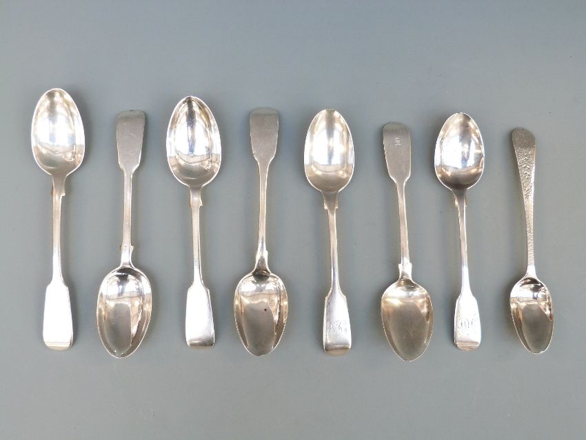 Eight various Georgian and later hallmarked silver teaspoons, 158g