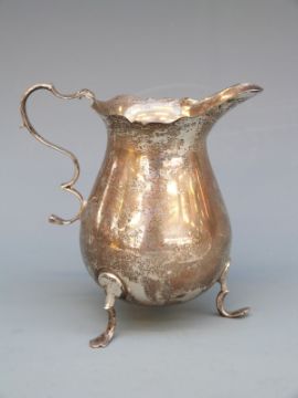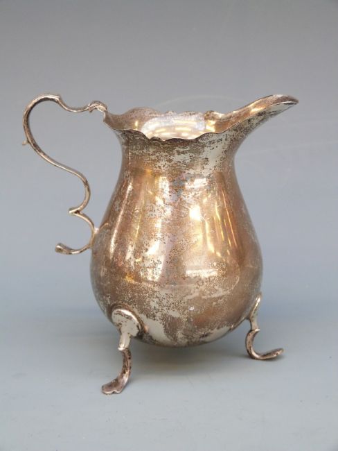 Modern hallmarked silver cream jug raised on three feet, Birmingham 1973, maker S.J.Rose & Son, height 9cm, 98g