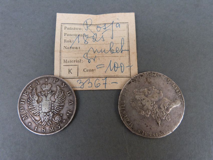 Imperial Russian 1825 Alexander I silver one rouble coin together with a 1775 silver 'Stanislaus Augustus' Polish thaler coin