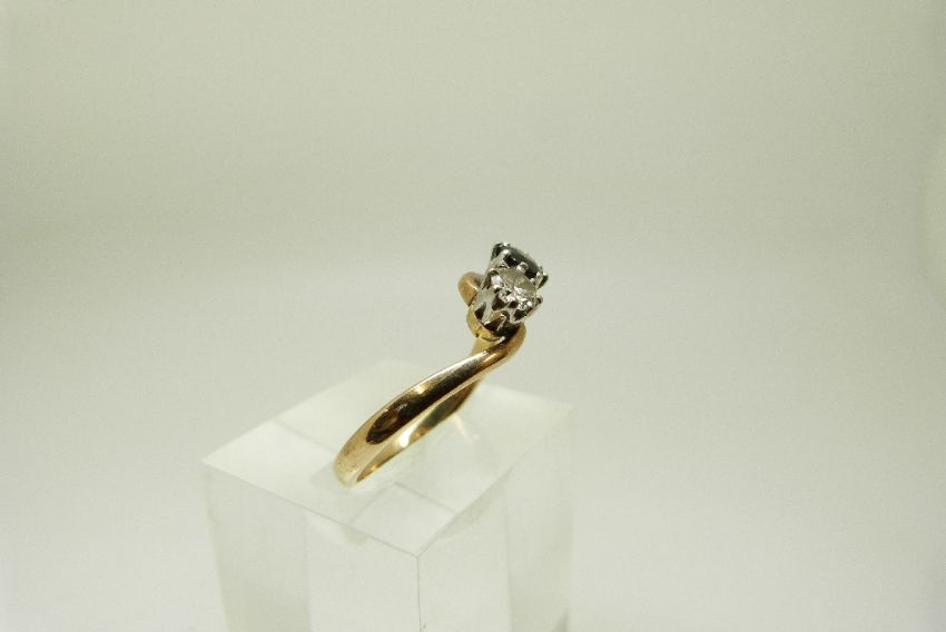 A 9ct gold ring set with a diamond of approximately 0.25ct and a sapphire in a twist setting, size Q/R, 2.8g