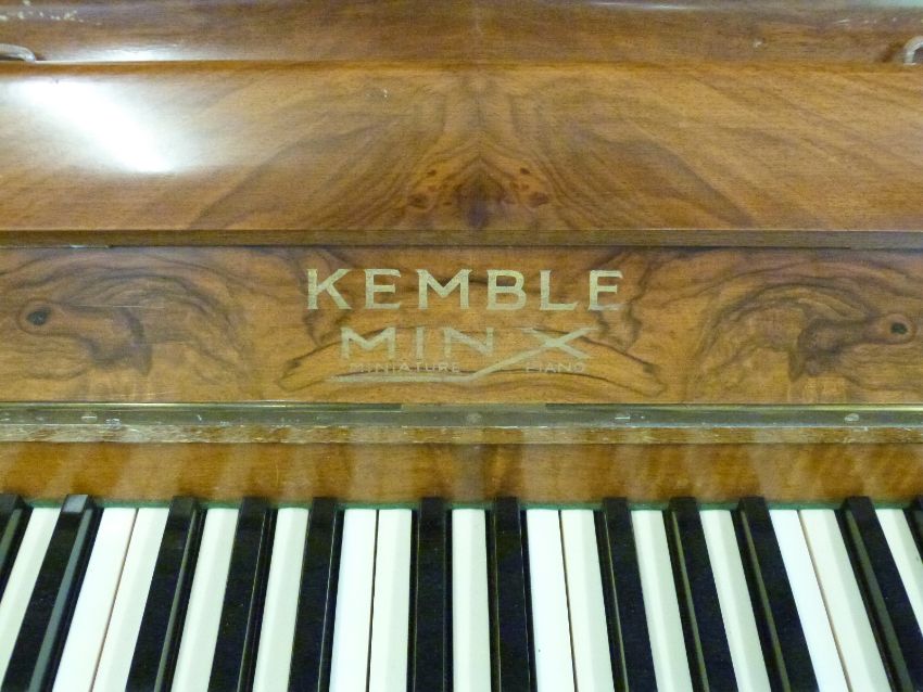 Art Deco Kemble Minx miniature or ship's piano with walnut veneer together with a large quantity of sheet music