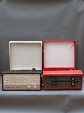 Dansette Viva 1960s record player, together with a 1960s/early 1970s Fidelity example in red
