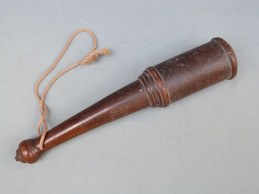 An early Victorian treen/turned wood truncheon or cudgel in elm or yew, length 24cm