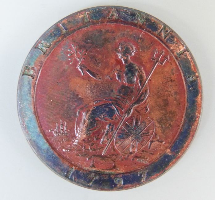 George III 1797 cartwheel EF / UNC 10 laurel leaves, blue and copper toned