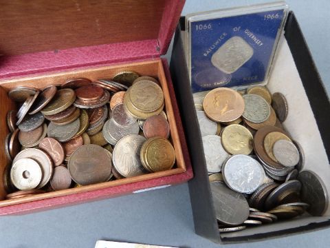 An amateur collection of world coinage, 19thC onwards, including European, USA, Canada, Channel Islands, Irish Free State, some bank notes, gold plated Kennedy half dollar etc