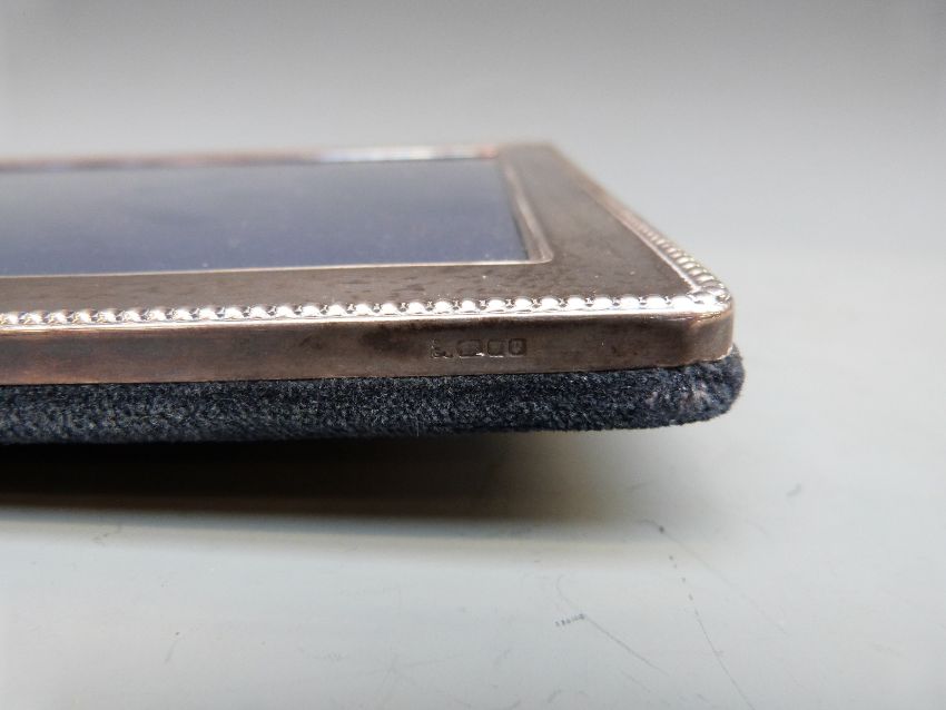 Modern hallmarked silver photograph frame to suit 7 x 5 inch photograph, with enamel back, marks rubbed