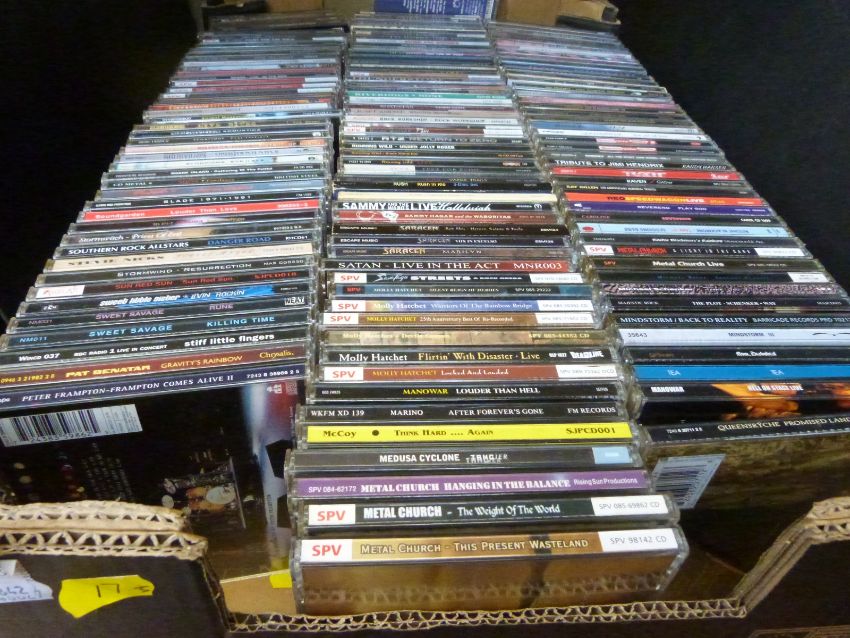 Approximately 150 rock CDs many collectable including Scorpions, Molly Hatchet, Saxon, Savatage, The Hamsters etc