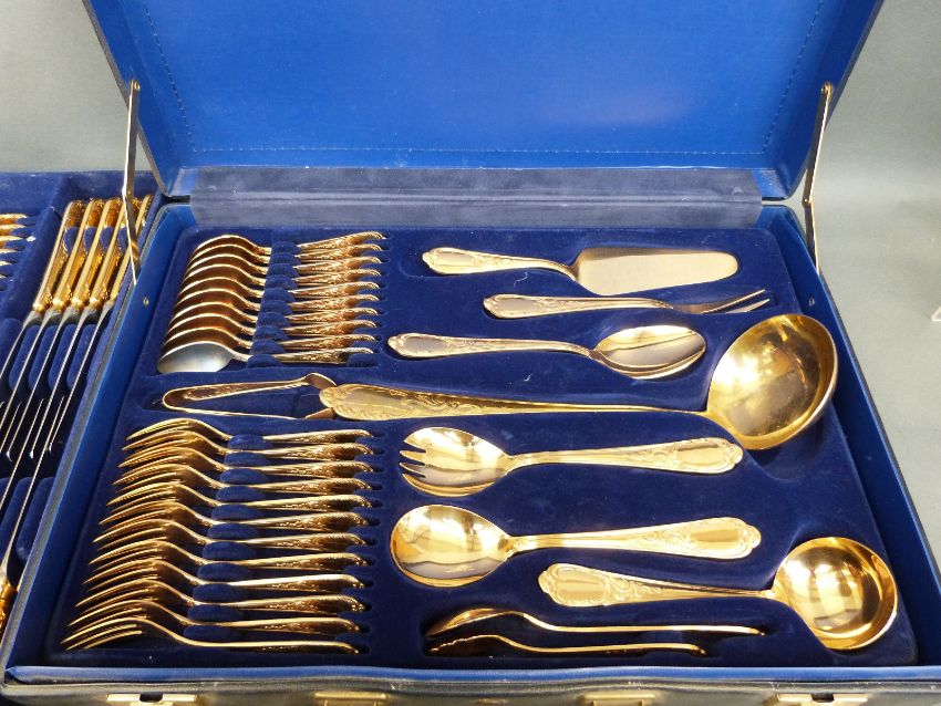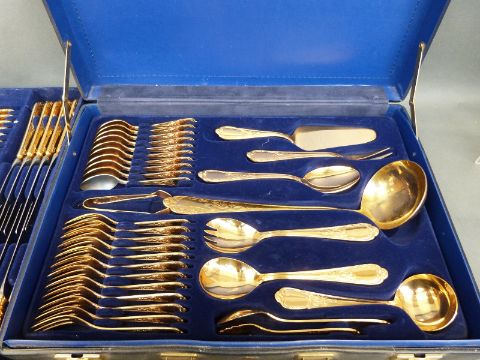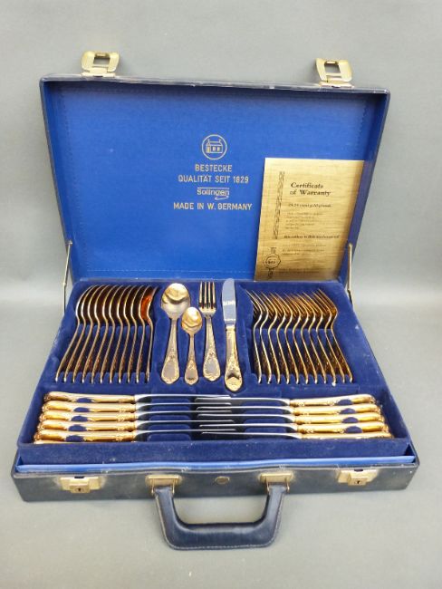 A 12-place setting canteen of Solingen gilt cutlery in fitted case