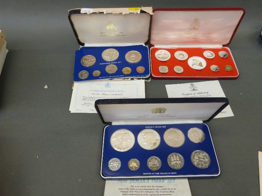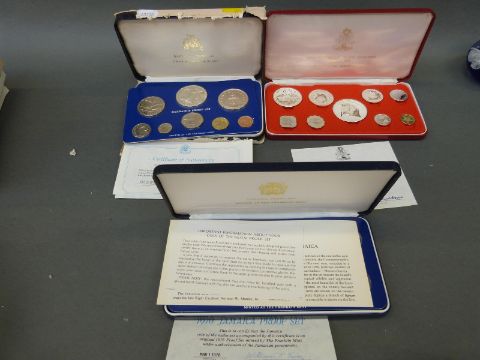 Three cased proof coin sets comprising Barbados, Bahamas and Jamaica