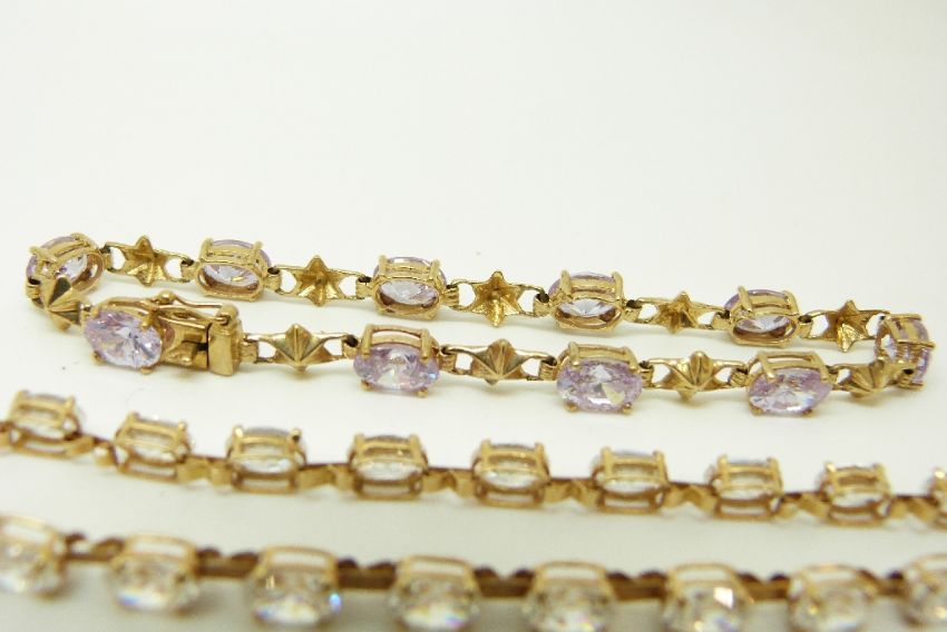A 14k gold tennis bracelet set with cubic zirconia and a 9ct gold bracelet set with topaz, 14.2g