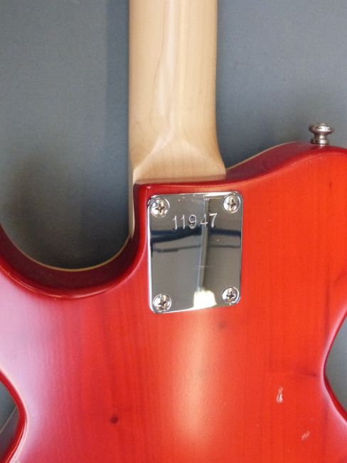 Gordon-Smith hand-made English Graff guitar in cherry poplar body with maple veneer, one of the last to leave the Manchester workshops (reg no 11947), with soft carry case