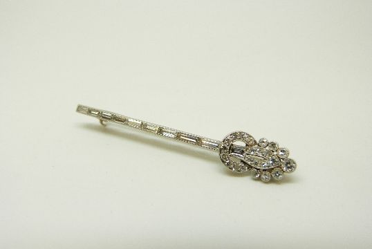 Art Deco 18ct white gold brooch set with baguette cut and round cut diamonds