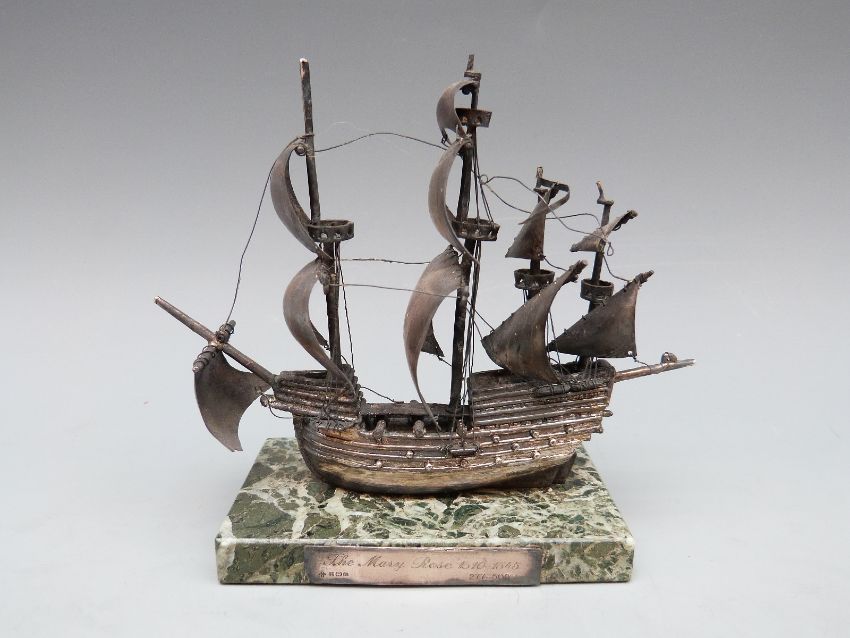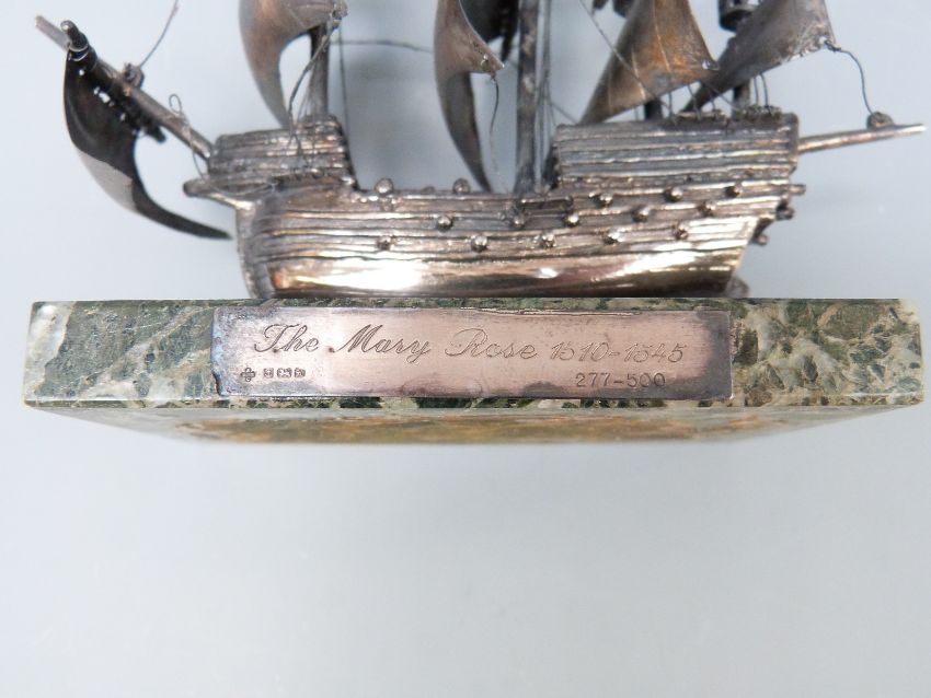 Hallmarked silver limited edition 277/500 model of the Mary Rose with hallmarked silver plaque, on onyx base, length 14cm