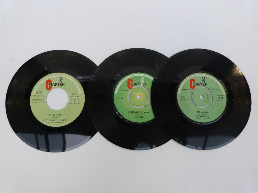 The March Hare - Cry My Heart, Spanish pic cover, vinyl, EX, with a UK issue, and The Bliss - Courtyards of Castile