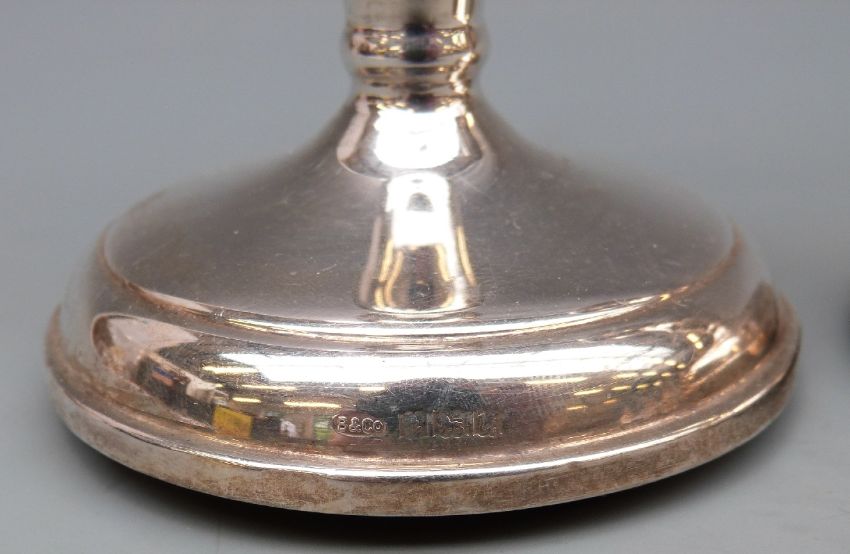 A pair of modern hallmarked silver candlesticks, Birmingham 1969 maker W I Broadway & Co, 10.5cm tall