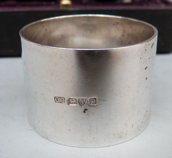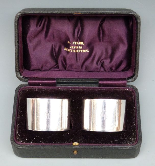 George V cased pair of hallmarked silver napkin rings, Chester 1920, maker Cohen Hewer Cheshire, 122g