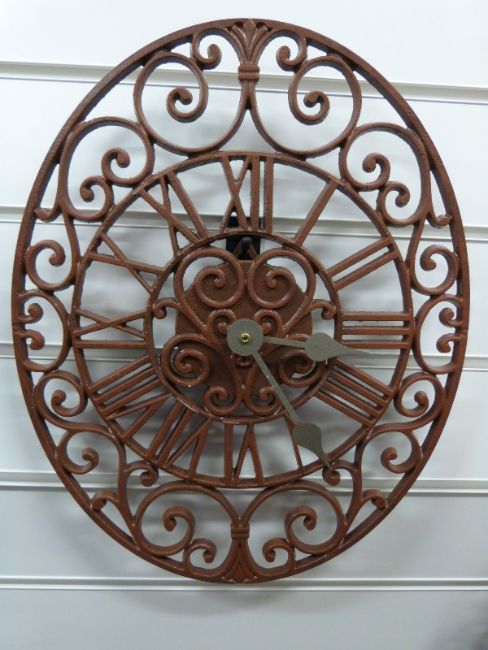 Newgate Chatsworth oval garden / patio clock in rust coloured finish with Roman numerals, 40cm maximum diameter